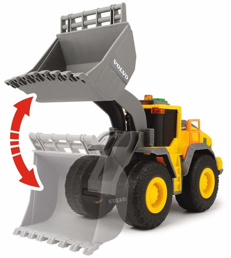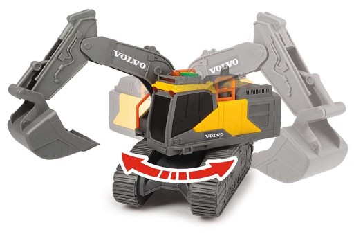 Автомобілі сірого кольору та прикрашені логотипом Volvo з боків. Транспортні засоби оснащені рухомими елементами (руками та ковшем), бульдозер має чотири колеса, завдяки яким він може пересуватися поверхнями, а екскаватор оснащений гусеницями.l Машини ідеально підходять як для гри в приміщенні, так і на вулиці, де хлопчик користується ложкою, вона зможе зачерпувати пісок, вони мають рухомі лопаті, а на верхній частині транспортних засобів є кнопка, при натисканні на яку вмикаються світлові та звукові сигнали.