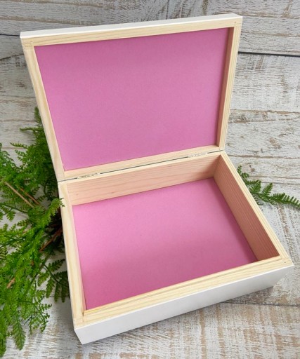 Дерев'яна коробка з білою зовнішністю, кришка з кольоровим принтом безпосередньо на коробці, персоналізація IMI