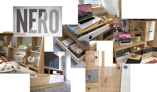 NERO 18 (матовий варіант) - набір меблів для молодіжної кімнати, широкий письмовий стіл, шафа, підвісна тумба та ліжко
