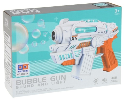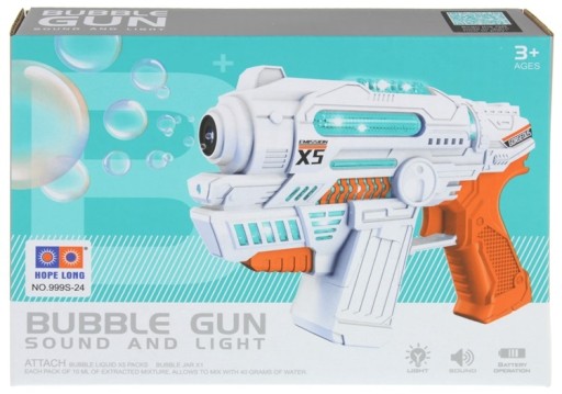 Бульбашкова рушниця у формі зброї для справжнього командос порадує кожного маленького шанувальника військових завоювань. Пістолет має зручну рукоятку, а керування ним – це дитяча гра. Налийте рідину, що входить в набір, в ємність, заховану в патронному магазині, і все! З кожним наступним натисканням на спусковий гачок ви зможете насолоджуватися видом блискучих бульбашок, а звукові та світлові ефекти неодмінно порадують найвибагливішу дитину. Рушниця ідеально підходить для повсякденних ігор в саду і вдома.