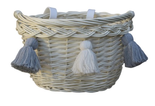 КРАСИВИЙ МІНІ-КОШИК ДЛЯ ДИТЯЧОГО ВЕЛОСИПЕДА АБО СКУТЕРА білого (нефарбованого - від білого до кремового) плетеного кошика ідеально підійде для велосипедних прогулянок для найменших. Міні-кошик, адаптований для маленьких велосипедів або самокатів, ідеально підходить для транспортування необхідних іграшок.