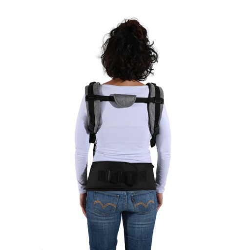 Він забезпечує так звану позу жабки і таким чином утримує стегна дитини в фізіологічно правильному положенні і розвантажує спину. Додаткові м’які лямки та широкий стегновий ремінь забезпечують додатковий комфорт і підтримку попереку (ергономічну підтримку спини).