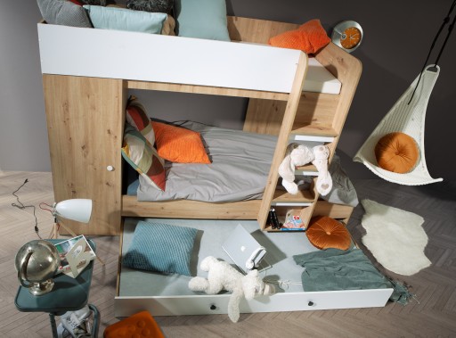- нижнє ліжко висувається на ручках - воно також може виконувати роль ящика