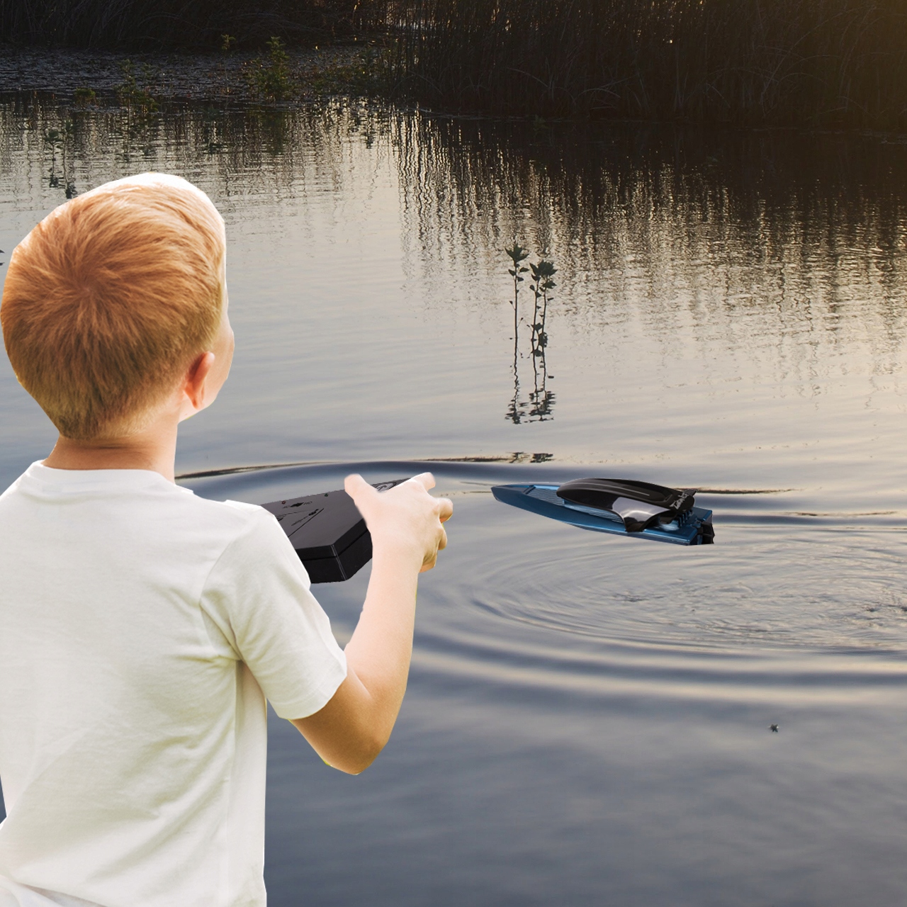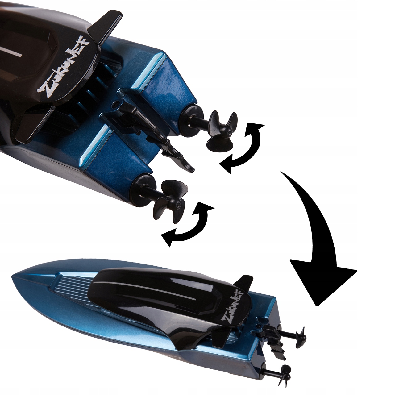 Motorówka idealna do pływania w basenach lub jeziorach. Podwójna konstrukcja śmigła=potężna moc.