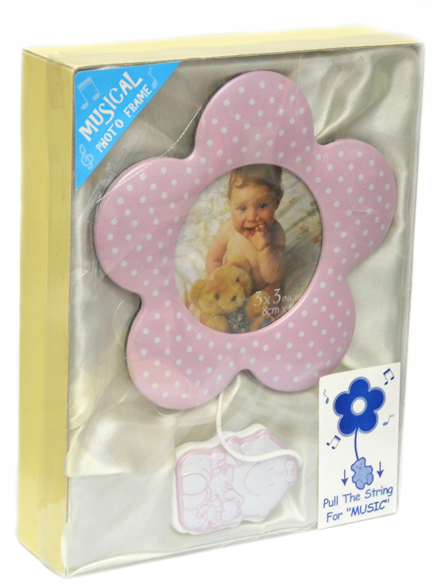 Nowoczesna ramka, która posiada wbudowaną pozytywkę - wystarczy pociągnąć za sznurek aby usłyszeć melodię.