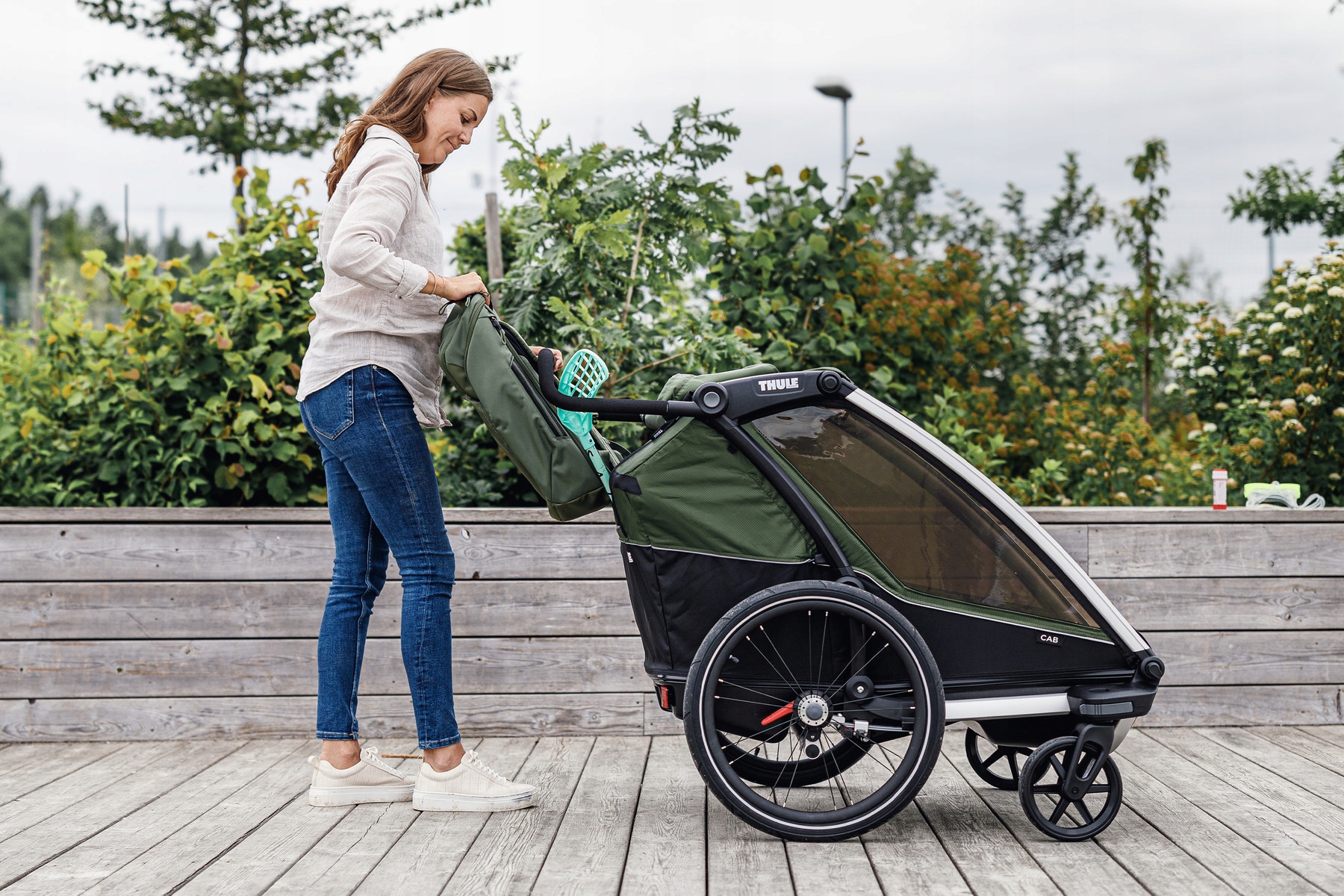 - Click n 'Store function - convenient storage of spare running, walking and cycling sets in the stroller