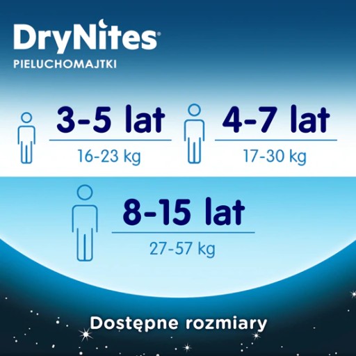 Підгузки DryNites від Huggies - це продукт, створений для дітей, які мають проблеми з нічним нетриманням сечі.Допомагає залишатися комфортним і сухимпід час сну, нейтралізуючи наслідки нічного нетримання сечі, що іноді трапляється у дітей.
