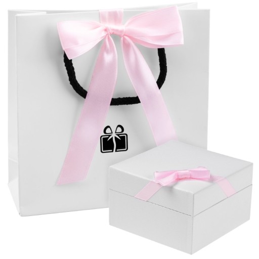 - Елегантна біла коробочка з рожевим бантом