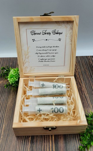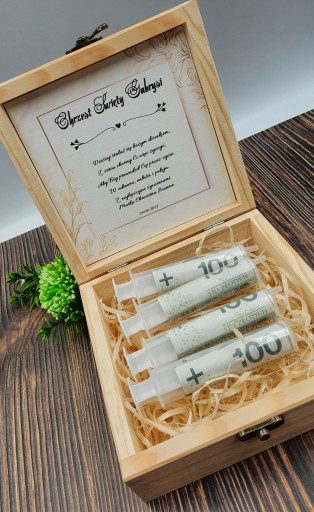 - наповнювач з деревної вовни плюс 3-5 шприців по 20 мл (шприци підходять для всіх номіналів банкнот: 100 200 500 злотих)