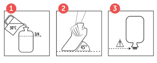 - Тримайте гумову горловину грілки у вертикальному положенні та наповніть грілку водою наполовину.