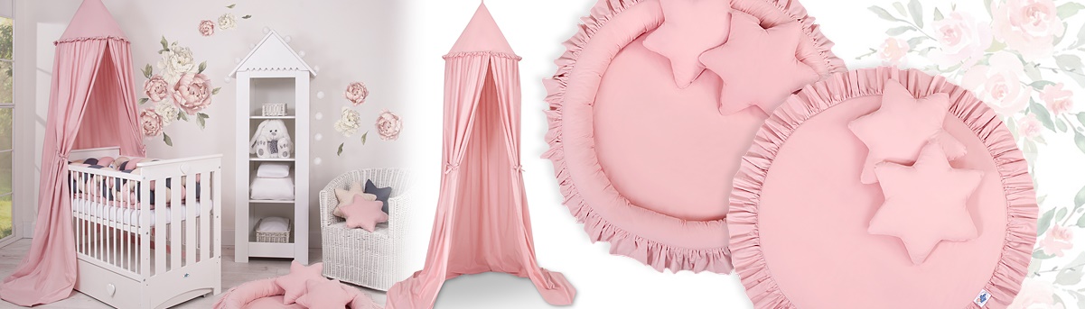 Efektowny wiszący baldachim to piękny element pokoju dziecięcego. Może służyć jako niepowtarzalna dekoracja łóżeczka dziecięcego. Również może stworzyć przytulne miejsce do zabawy. Zawieszony nad łóżeczkiem dziecięcym osłoni przed nadmiarem światła oraz wytłumi hałasy, tworząc wewnątrz łóżeczka przytulne i bezpieczne miejsce do odpoczynku.