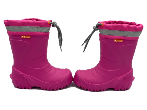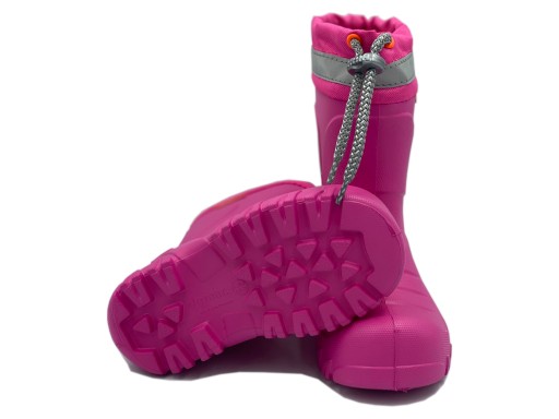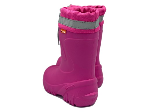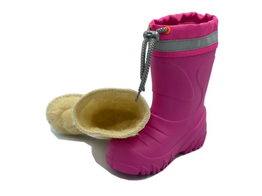 Надзвичайно легкі дитячі дощові черевики, утеплені натуральною вовною, виготовлені з матеріалу EVA, з практичною знімною вставкою, яку можна прати в стандартних миючих засобах при температурі до 40°C. Ідеально підійде як по дорозі до школи, так і для гри у дворі. Вони захищають від вологи та ізолюють від холоду. Манжета в рубчик запобігає потраплянню снігу всередину.