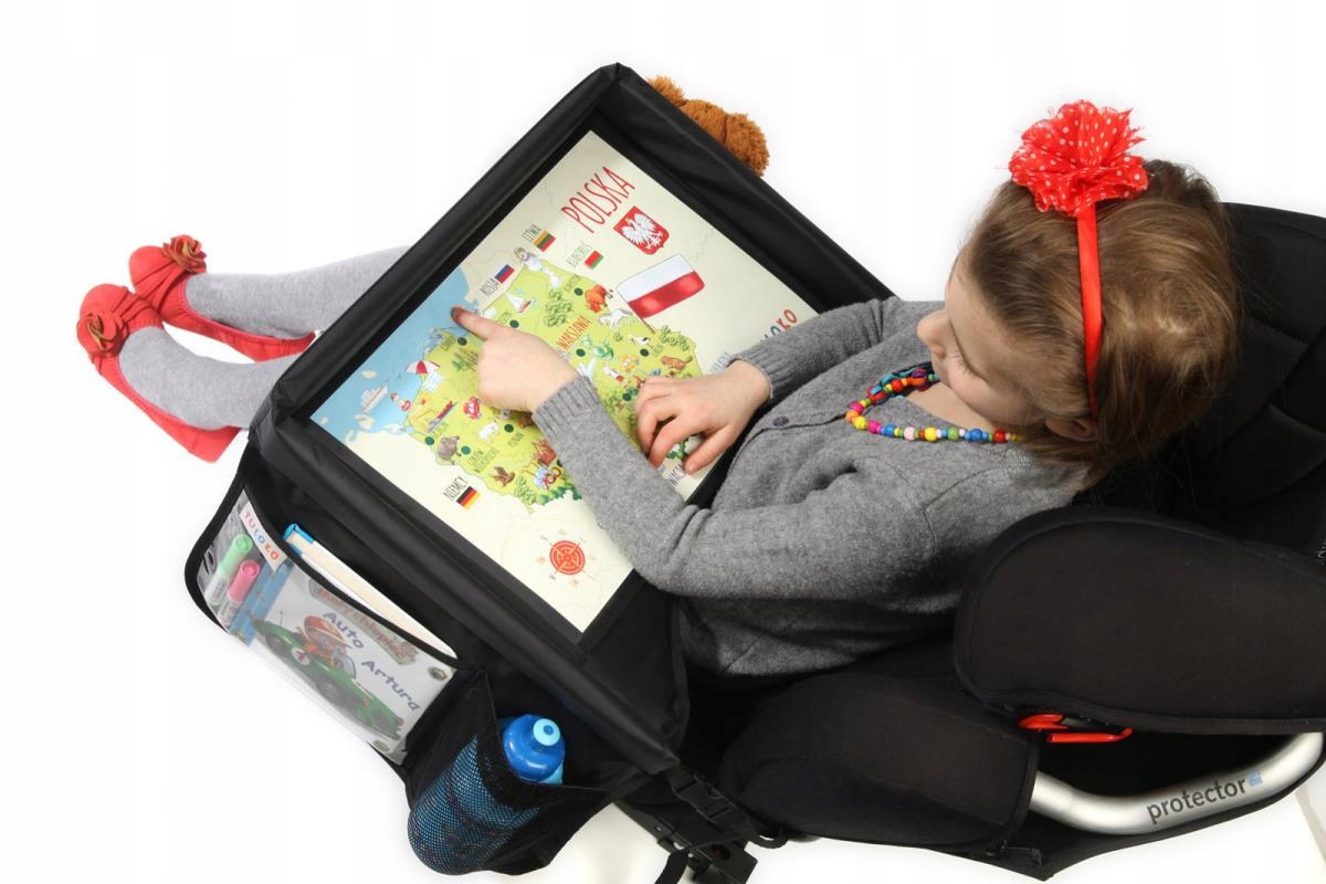 Bezpieczny Stolik Podróżnika Tuloko to doskonałe rozwiązanie w podróży! Przeszedł pozytywnie dynamiczny test zderzeniowy wykonany w Przemysłowym Instytucie Motoryzacji PIMOT. Stolika można używać podczas jazdy samochodem, autobusem, pociągiem i w samolocie. Nada się również do wózka! Duża powierzchnia blatu i wysokie ścianki, które zapobiegają spadaniu przedmiotów, dodatkowo pojemne kieszonki po bokach, aby móc mieć wszystko pod ręką. Stoli jest łatwy w czyszczeniu, pokryty wodoodpornym materiałem, i pasuje do większości fotelików. Do stolika dołączona jest Mapa Polski lub Europy, przezroczysta kieszeń w blacie umożliwia schowanie do niej mapy, lub rysunku dziecka.