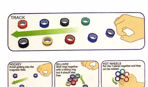 - Магнітні непосидні кільця зручні у використанні, завдяки обертанню в різних напрямках їх можна крутити одним пальцем, крутити, пропускати між пальцями і виконувати трюки.