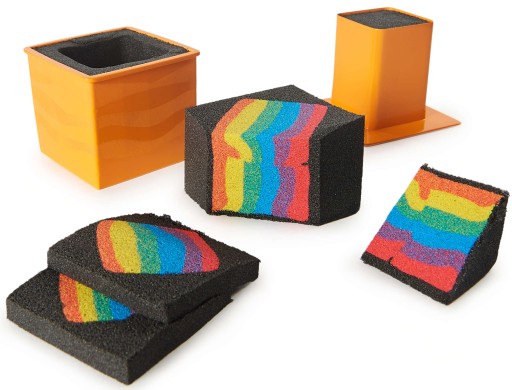 У комплект входитьчотири кольориІкінетичний пісок, куполоподібна форма, квадратна форма, 2 кубічні пуансони, 5 інструментів, прозорий ніж, інструмент для дроблення, плита для дроблення, контейнер для піску зі зміною форми, фон іінструкція.