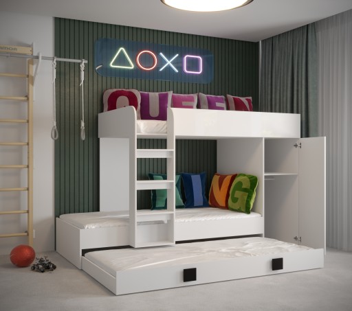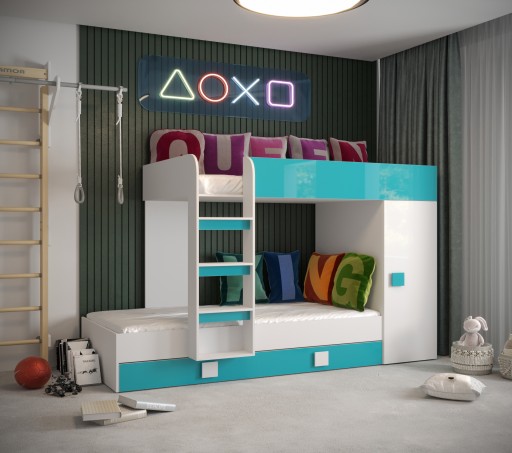 - нижнє ліжко висувається на ручках - воно також може виконувати роль ящика