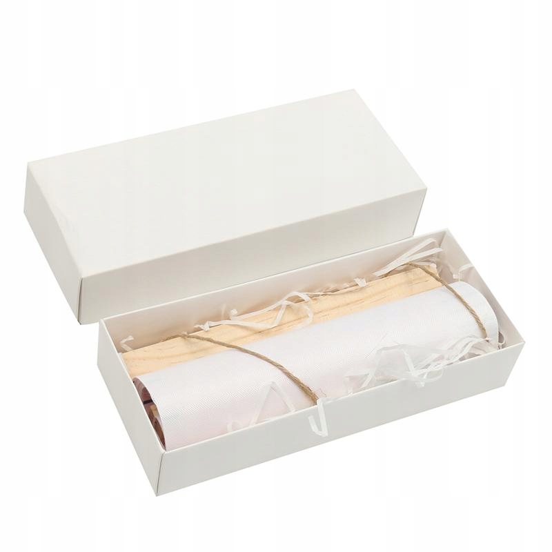 Wykończenie: Białe płótno z drewnianymi wykończeniami.