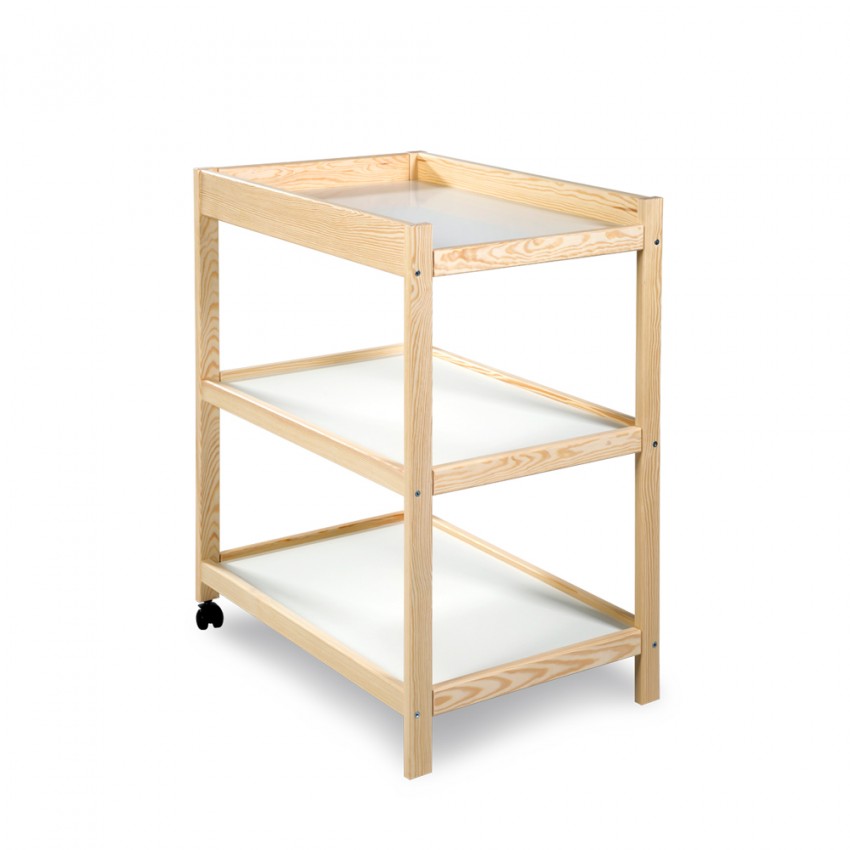wymiar: 92x75x54 cm drewno sosnowe + MDF malowany + płyta wiórowa Dwa zamontowane kółka pozwalają na łatwe przestawianie przewijaka.