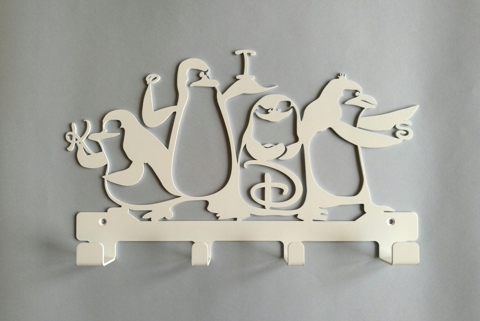 Dekoracyjny wieszak dostępny jest w trzech kolorach: czarnym białym oraz szarym z metalicznymi drobinkami i posiada cztery wygodne uchwyty, na których powiesić możemy zarówno okrycia wierzchnie, ozdoby, jak i nieco cięższe obiekty, takie jak np. plecaki szkolne. Wygodny rozmiar wieszaka (36 cm x 21 cm) umożliwia umieszczenie zadziornej czwórki w dowolnym miejscu - a przy tym pomaga jeszcze lepiej zagospodarować dostępną przestrzenią.