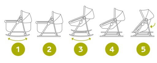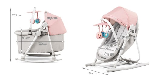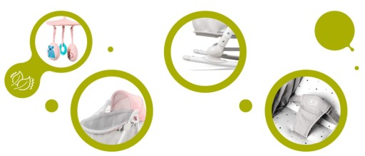 - Функції: ліжечко, люлька, викидало, качалка та дитячий стільчик