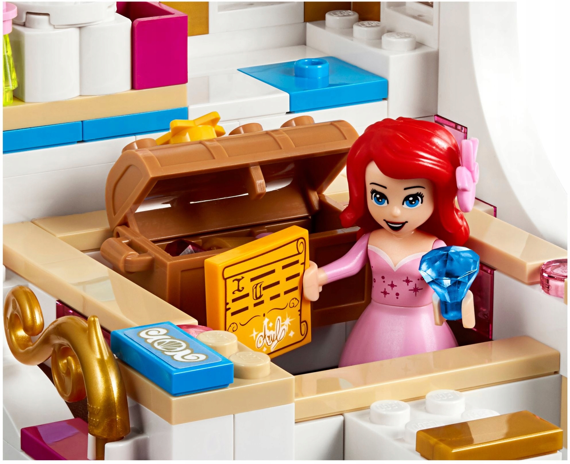 - Uroczysta łódź Ariel ma altankę z obrotowym parkietem, koło sterowe, toaletkę i wyrzutnię fajerwerków. W zestawie jest też dok i wysepka Sebastiana z obracającymi się rozgwiazdami.