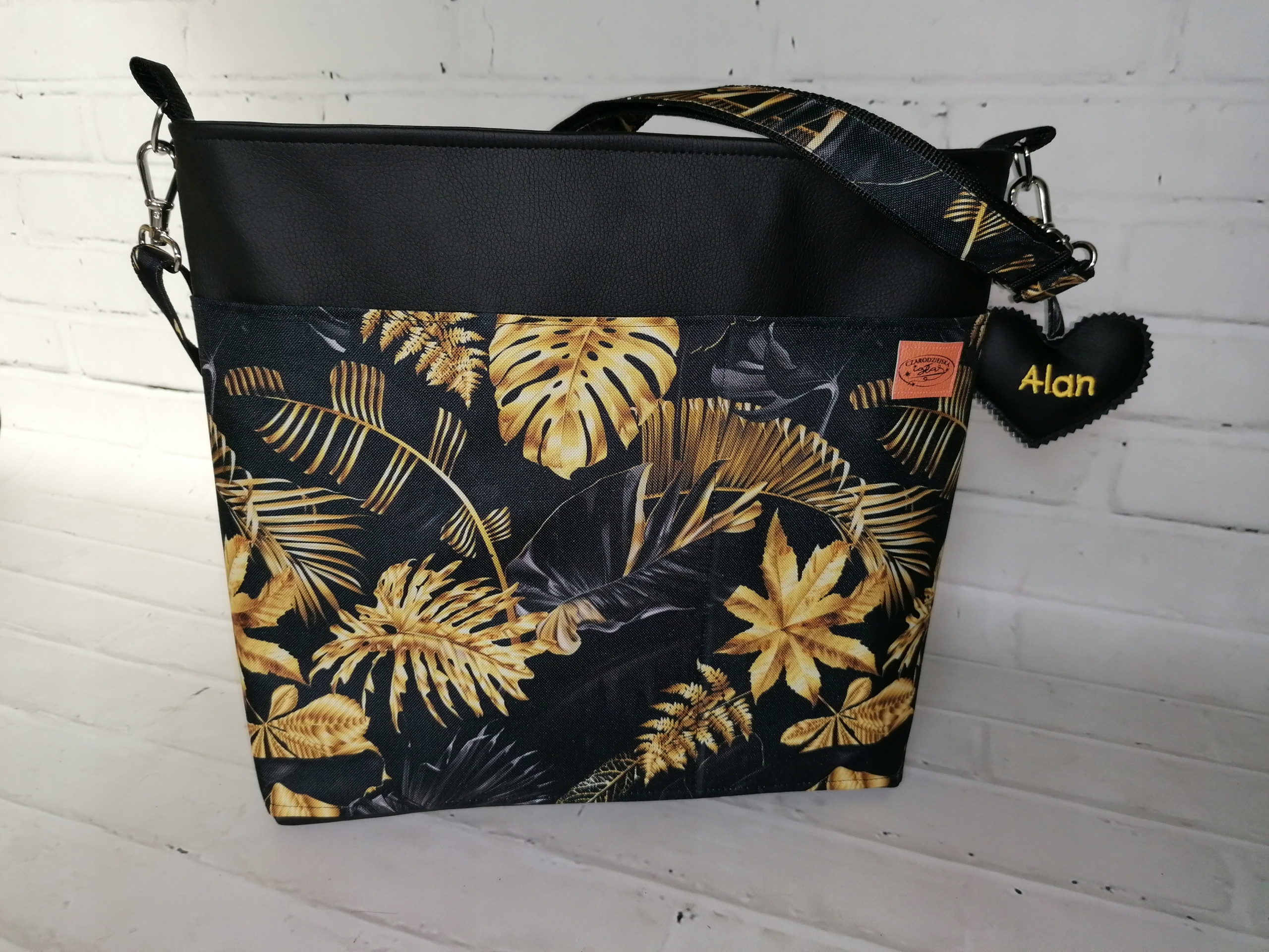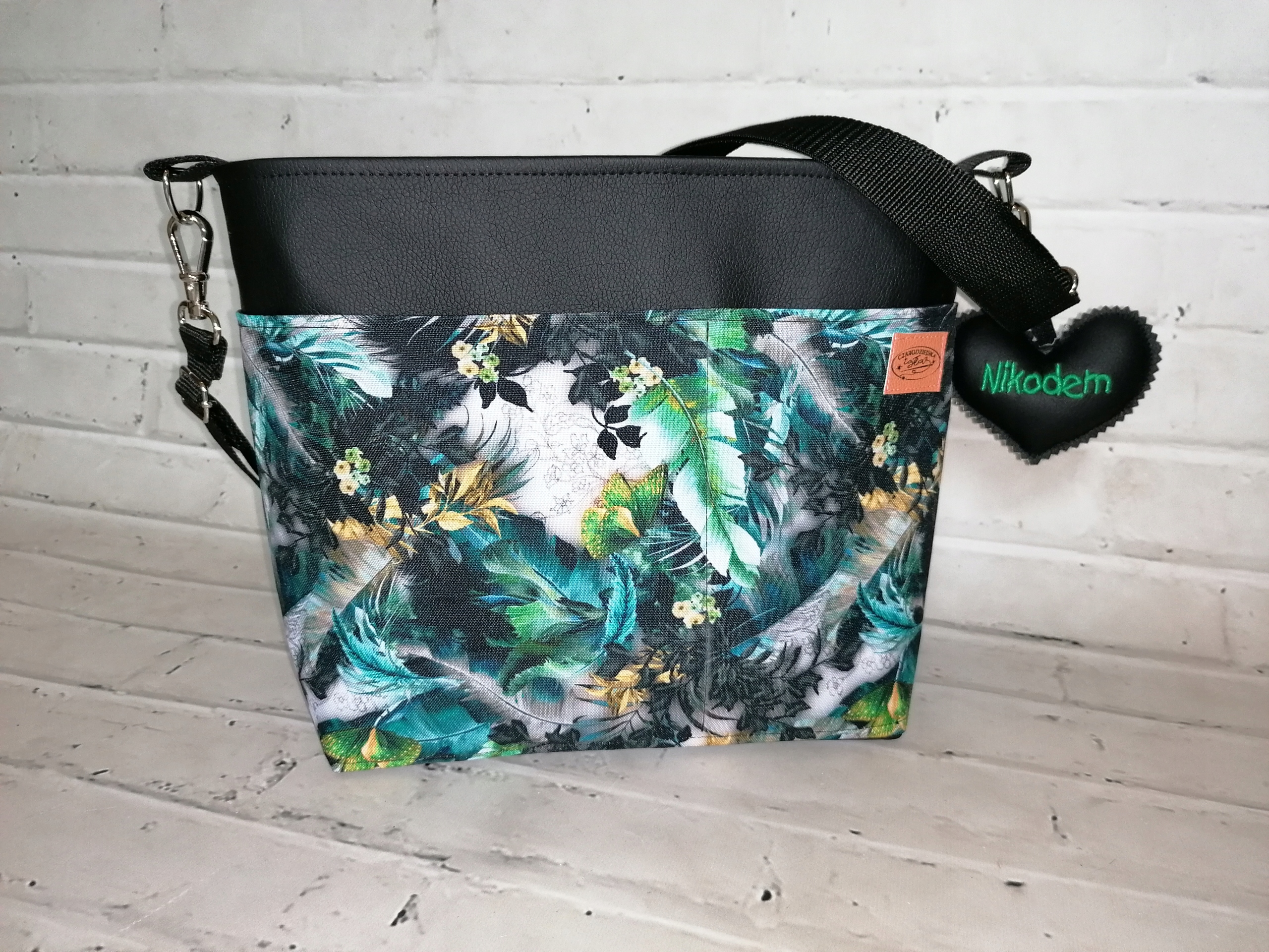 Сумка большая черная? piórkami, кожзам ??? коляски