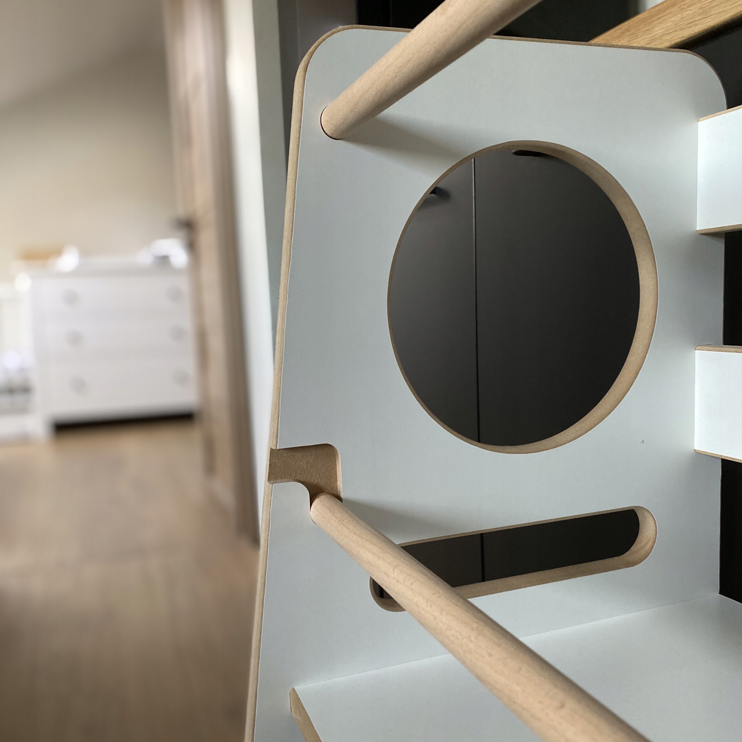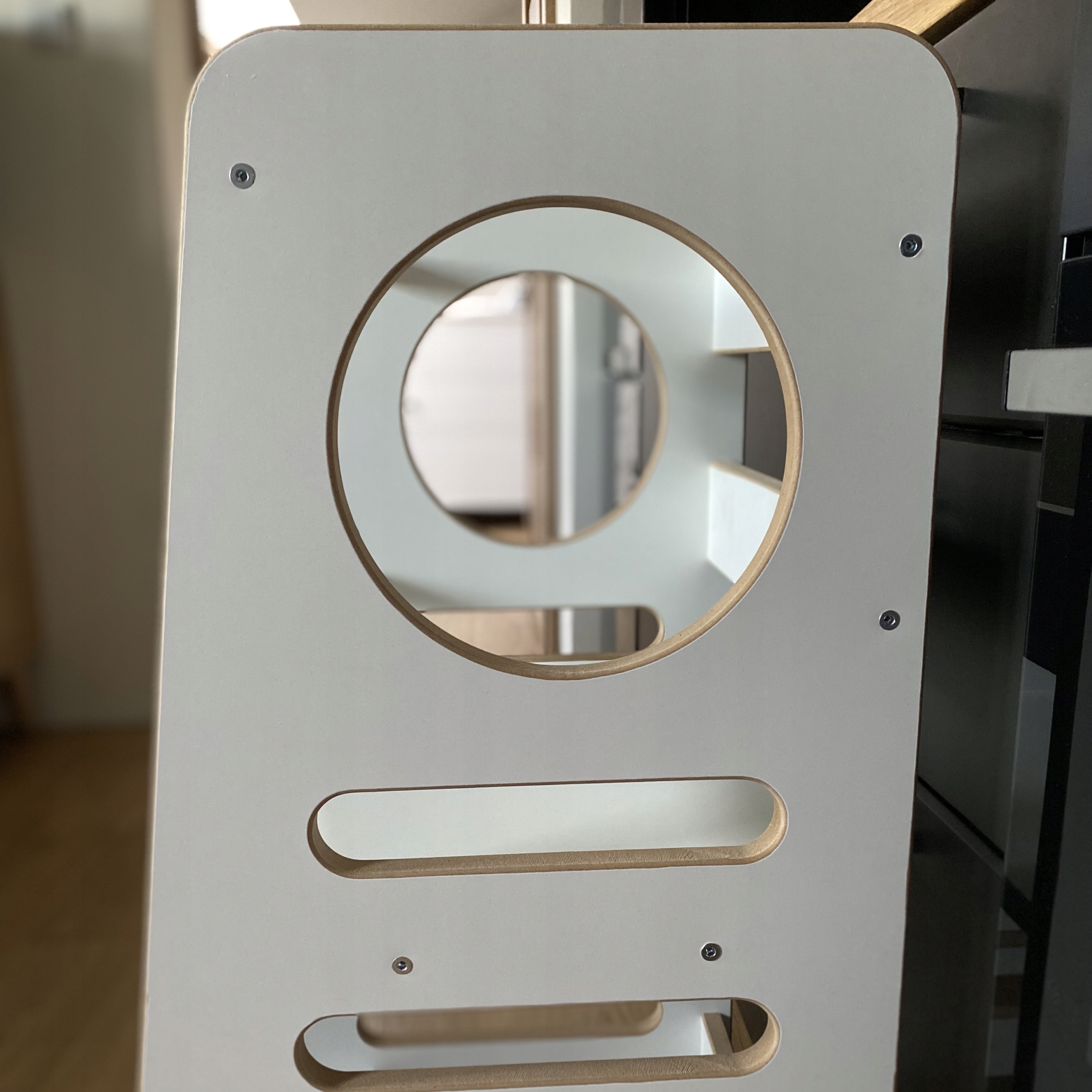 Kitchen Helper marki BABYWOOD został wykonany z wysokiej jakości płyty MDF o grubości 18 mm, co sprawia, że jest niezwykle wytrzymały i stabilny. Stworzony w całości w naszej pracowni, przez ludzi z pasją do drewna- produkt 100% polski.