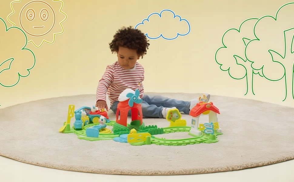 - Pociąg mknie przez pełną atrakcji trasę, będącą zestawem do zabawy, osadzonym w świecie gospodarstwa rolnego.