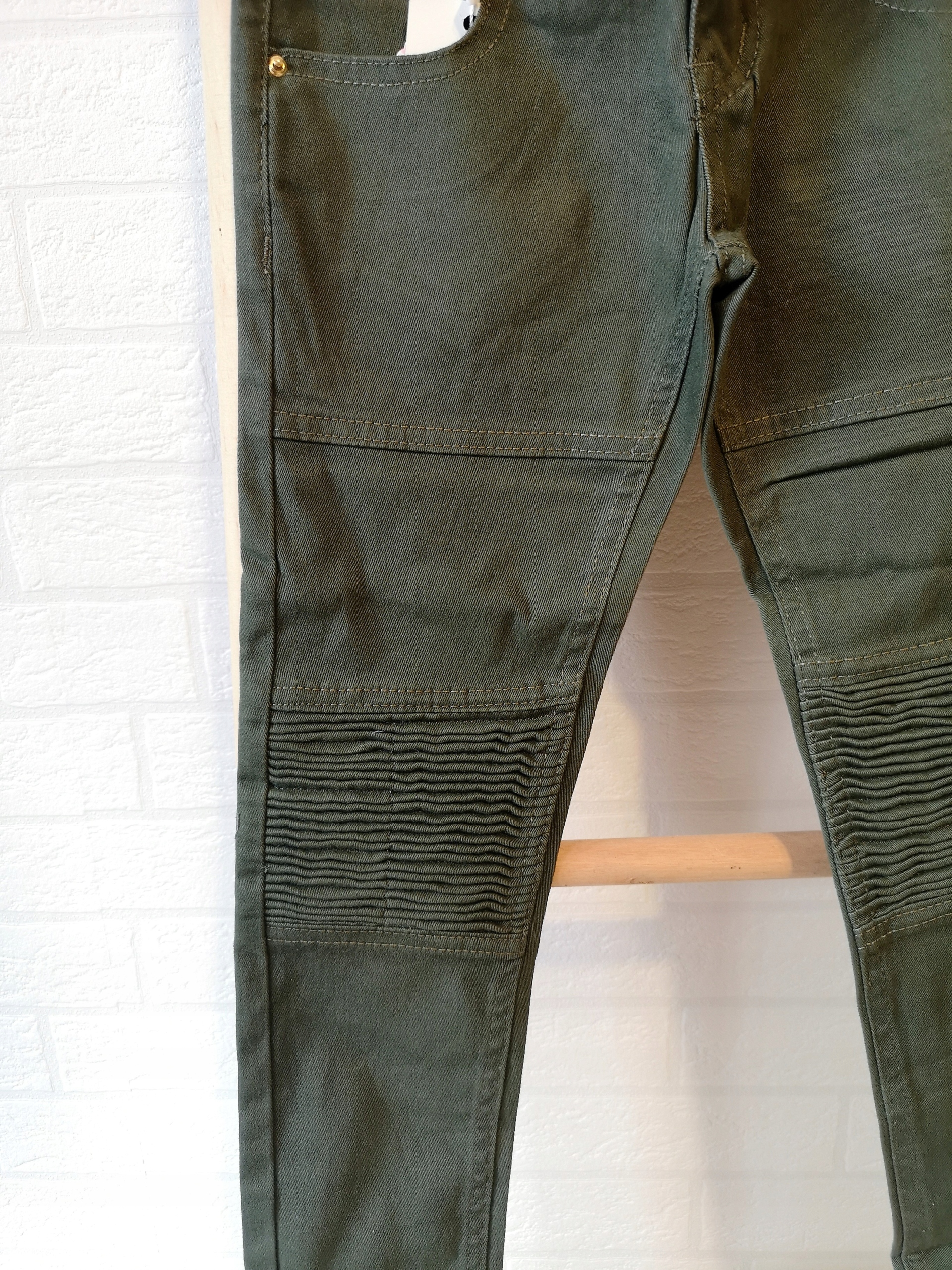 Na kolanach lekkie zdobienia w postaci przeszyć