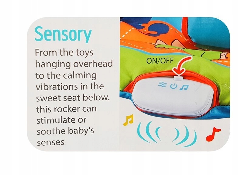 Dodatkowo do zestawu dołączony jest miś i żyrafa do zawieszenia. Z pewnością przyciągną uwagę dziecka, zachęcając do treningu rączek. Bujak może pobudzić lub ukoić zmysły dziecka, dzięki wibracji.
