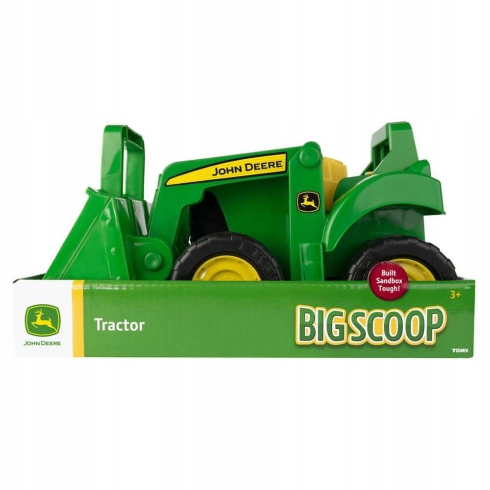 Traktor John Deere z ładowarką został stworzony przez cenioną za wysoką jakość produktów firmę Tomy. Traktor powstał na licencji marki John Deere, będącej światowym liderem na rynku maszyn rolniczych, i wiernie odwzorowuje prawdziwy pojazd. Posiada duże plastikowe koła z żółtymi felgami, które umożliwiają mu poruszanie się po powierzchni. Koparka z ładowarką w kolorze żółto-zielonym umożliwia dzieciom wspaniałą zabawę. Ładowarka dzięki specjalnemu uchwytowi ułatwia nabieranie piasku czy kamieni.
