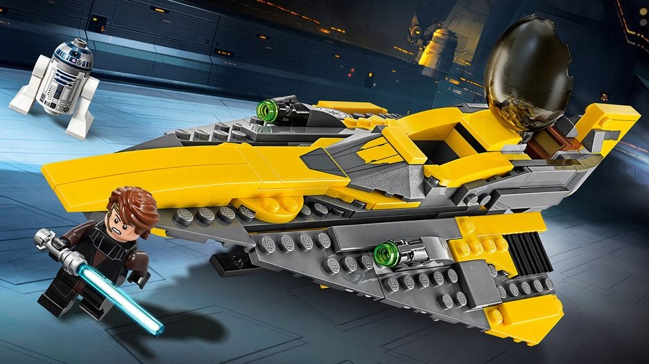 W kolekcji każdego młodego padawana przyda się zestaw LEGO® Star Wars 75214 Myśliwiec Jedi Anakina. Ten charakterystyczny myśliwiec z serialu „Gwiezdne wojny: Wojny klonów” o opływowym kształcie wyposażony jest w składane podwozie, otwierany kokpit, w którym można posadzić minifigurkę LEGO Anakina, zaczep na miecz świetlny pod spodem, ukryty schowek na dodatkową amunicję, miejsce dla R2-D2 oraz miotacze klocków zamontowane na skrzydłach.