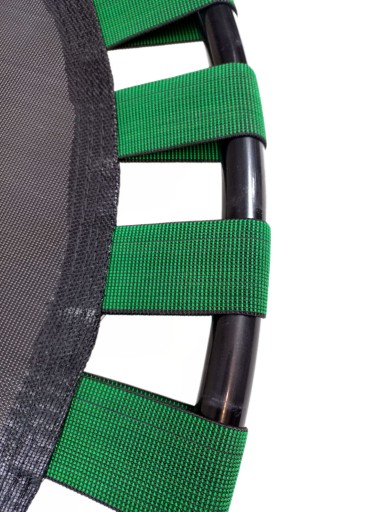 Цей батут має унікальну, непорушну систему кріплення килимка для стрибків. 30 спеціалізованих гумових смужок шириною 5 см працюють тихо та мають відмінну еластичність. Мешканцям багатоквартирних будинків не варто турбуватися про те, що їхнє навчання заважатиме сусідам. Чудово підходить для реабілітації, а також для дітей - звісно під наглядом дорослих.