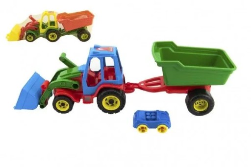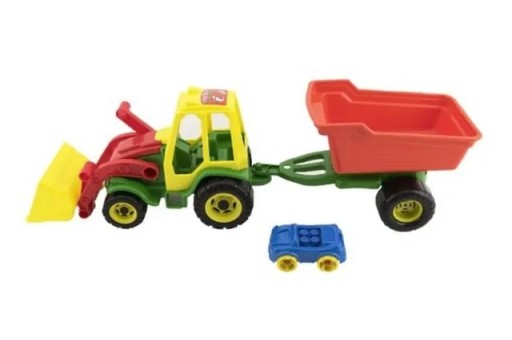- Іграшковий барвистий трактор з причепом