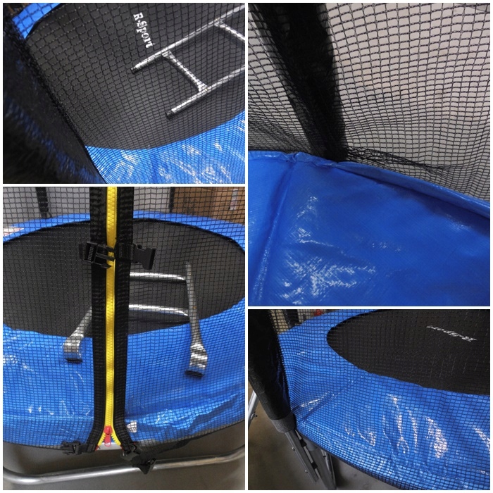 - Wejście do trampoliny zamykane na zamek błyskawiczny i rzepy,