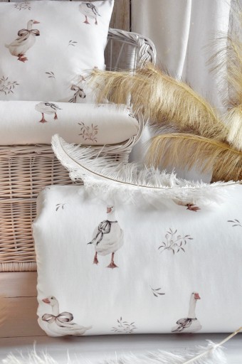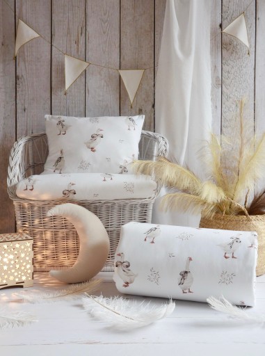 У комплект з двох частин входить пухова ковдра з антиалергічним наповнювачем розміром 75х100 см і плоска подушка 30х40 см. Ідеальний набір для дитячого ліжечка.