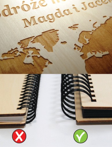 Дерев'яна обкладинка, на якій ми розмістимо одну з графіків з вашим текстом за допомогою лазерного гравера, завдяки чому графіка ніколи не зникає.
