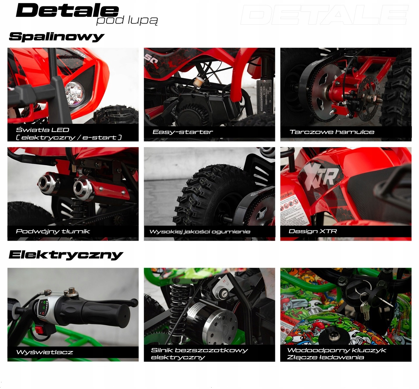 Quad jest nowy, posiada automatyczną skrzynię biegów , zrywkę bezpieczeństwa, wzmocnione zawieszenie, wzmocniony łańcuch, sportowy tłumik silnik dwusuwowy ok.6 KM ,największy ,najmocniejszy ,najbezpieczniejszy, najlepszy ,najmniej awaryjny ,najwygodniejszy.