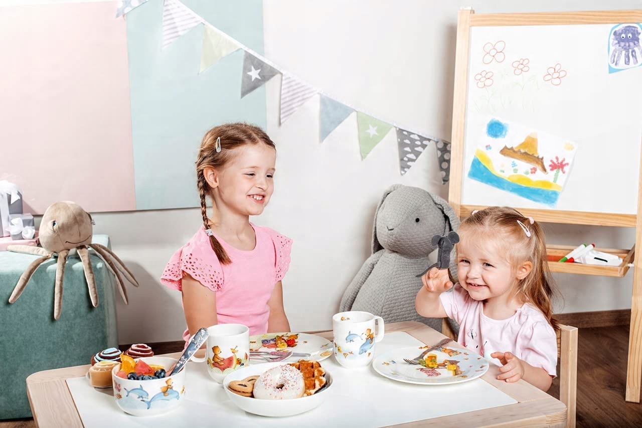 - Fantazyjny serwis stołowy z uroczym motywem misia, idealny rozmiar dla dziecięcych dłoni, idealny do wspólnego posiłku z całą rodziną.