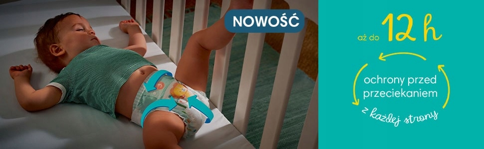 Czy wiesz, że podczas snu Twoje dziecko wykonuje nawet 2 razy więcej ruchów niż osoba dorosła? W nocy dziecko jest bardzo ruchliwe, przez co przeciekająca lub napęczniała od wilgoci pieluszka może zakłócić jego spokojny sen. Właśnie dlatego pieluszki Pampers zostały wyposażone w wyjątkową, dodatkową warstwę chłonną „sleep”, która pomaga szybciej wchłaniać wilgoć. Bez względu na ruchy i pozycję dziecka w trakcie snu skóra pozostaje sucha.