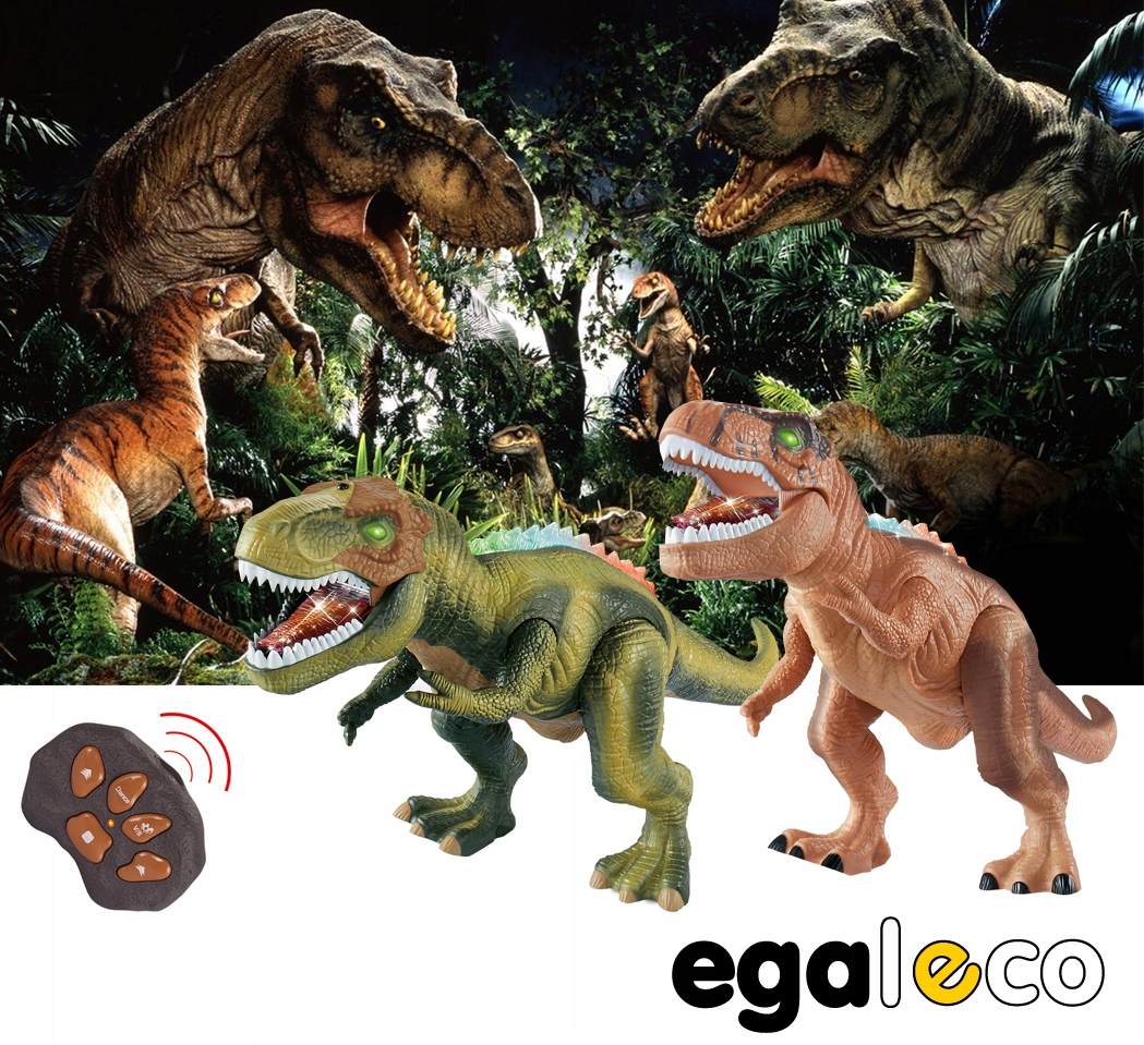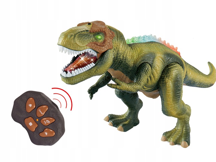 Duży interaktywny dinozaur Tyranosaurus Rex - zdalnie sterowany na pilota. Posiada podświetlenie na grzbiecie, paszczy i na głowie. Wydaje odgłos chodzenia, atakowania, ryczenia ale potrafi odtwarzać też taneczną muzykę. Doskonale radzi sobie również z chodzeniem i tańcem. Zabawka jest bardzo efektowna i z pewnością robi duże wrażenie, a sposób w jaki się porusza jest zjawiskowy.