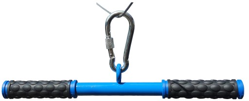 виготовлена з високоякісної польської сталі. Його можна використовувати з тренажерами, зіплайнами як елемент для утримання під час спуску. Рукоятка має гумові ручки, які сприяють стабільному захопленню.
