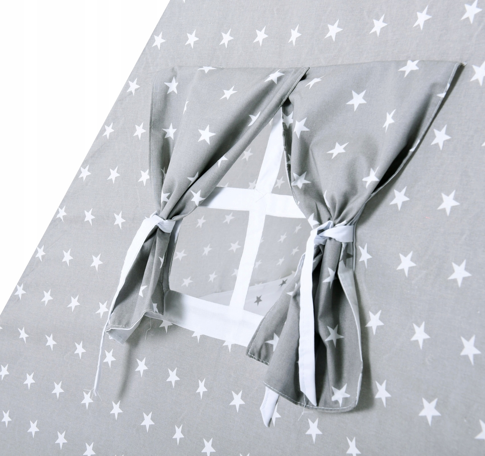 To bardzo łatwe. Wystarczy włożyć kije w tunele, całość rozstawić i związać wystające końce kijków sznurkiem. Dodatkowo każde tipi wyposażone jest w stabilizator namiotu, dzięki któremu cała konstrukcja jest bezpieczna dla dziecka, nie składa się podczas zabawy, a poszycie jest odpowiednio naciągnięte. Zamontowanie jest bardzo proste, wystarczy po rozłożeniu namiotu przełożyć śrubę przez drewniane krążki i całość skręcić.