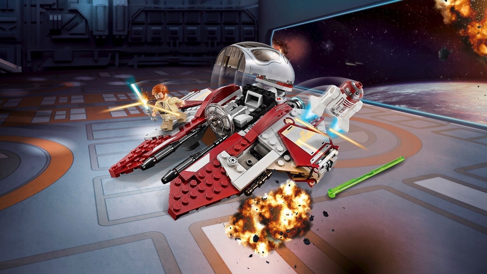Wstrzel się w konstelację statków kosmicznych i legendarnych postaci LEGO® Star Wars ze statkiem Jedi Interceptor Obi-Wana. Statek ma autentyczne kolory, otwierany kokpit, podwójne działka sprężynowe, rozkładane skrzydła i miejsce na montaż dołączonego droida astromechanicznego R4-P17. Zestaw zawiera też minifigurkę Obi-Wana Kenobiego.