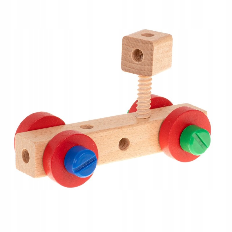 Rewelacyjna kolorowa, drewniana zabawka umożliwiająca zbudowanie warsztatu z funkcją krzesełka oraz innych dowolnych konstrukcji.