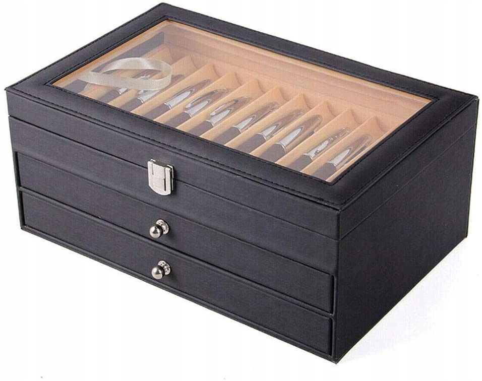 Wysokiej jakości etui ze skóry syntetycznej do eksponowania i przechowywania długopisów, przejrzyste i eleganckie.