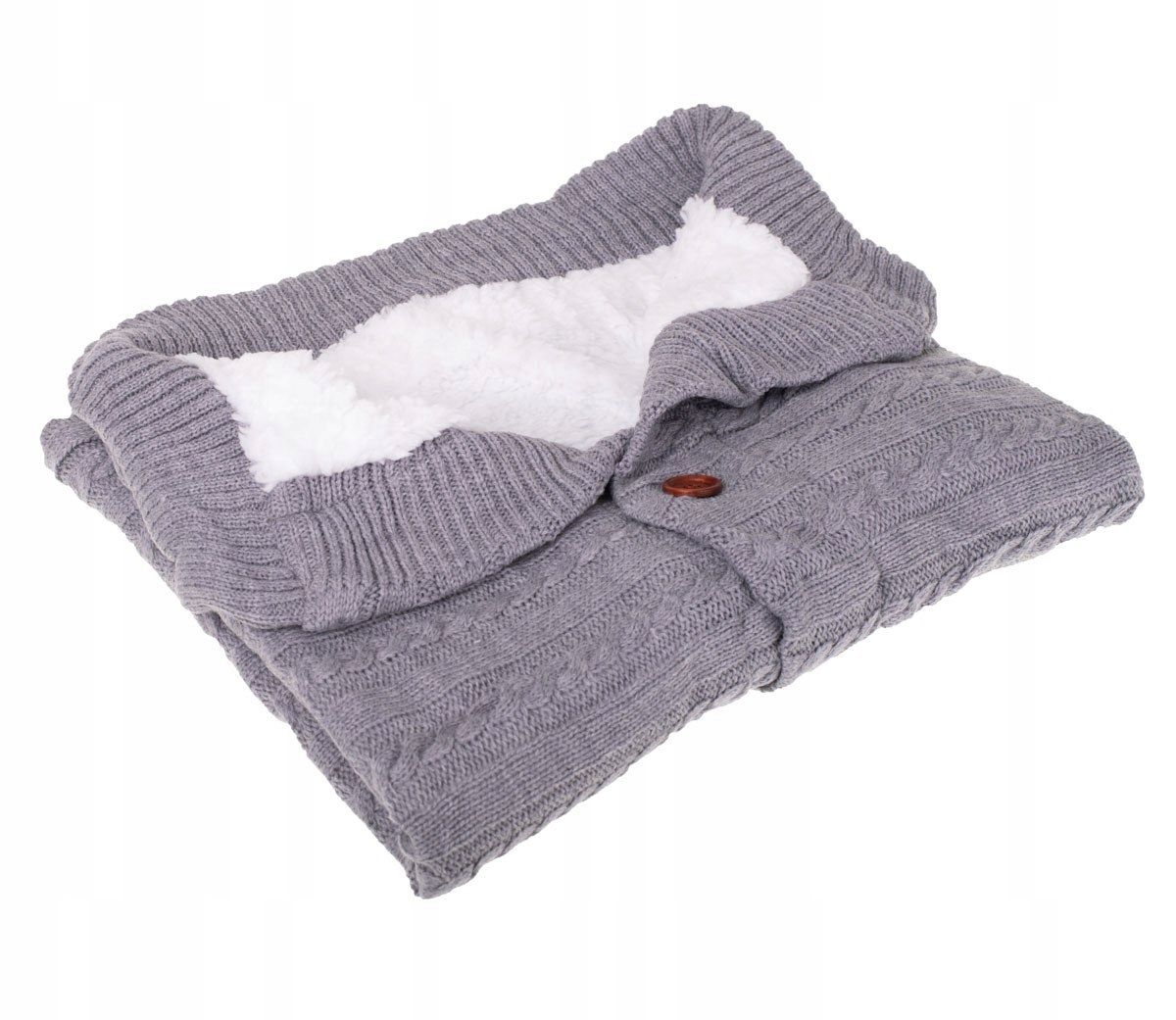 Śpiworek zapinany na guziczki z zewnętrzną fakturą materiału miękkiego zimowego sweterka.