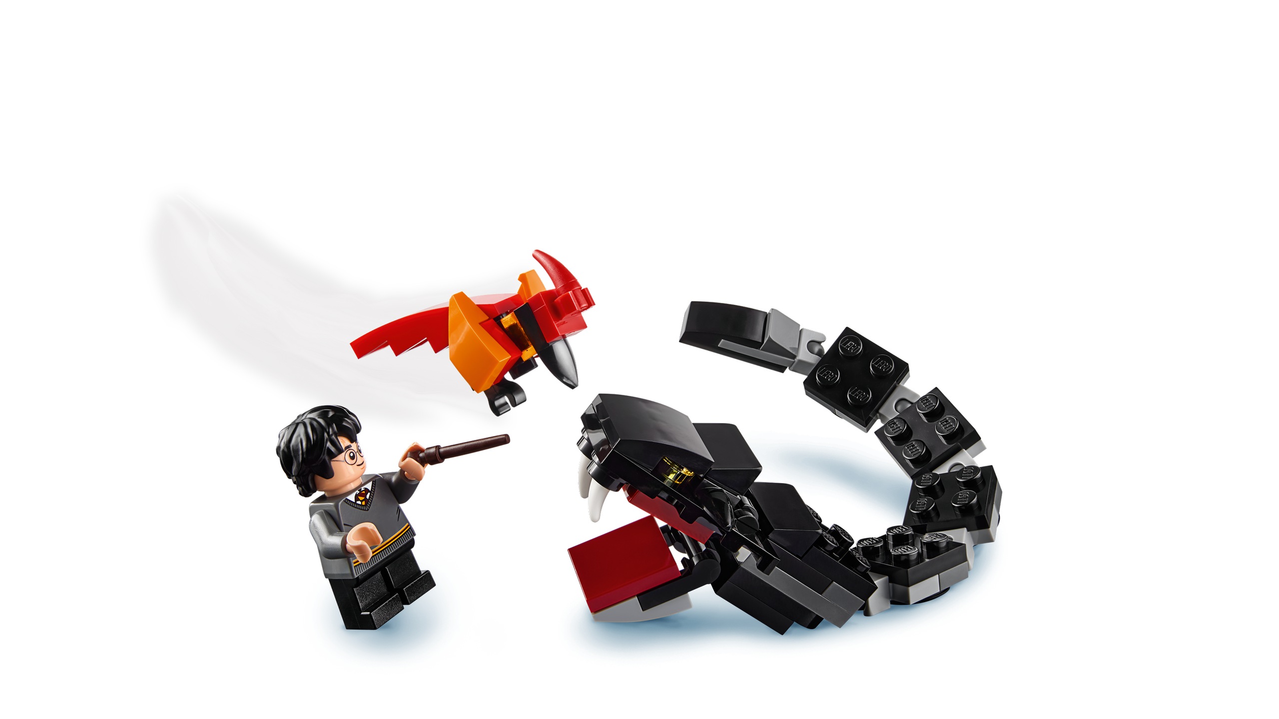 - W zestawie 10 minifigurek: Harry Potter™, Ron Weasley™, Hermiona Granger™, Draco Malfoy™, Susan Bones, profesor McGonagall™, profesor Quirrell z drugą twarzą Lorda Voldemorta™, Hagrid™, Albus Dumbledore™ i Prawie Bezgłowy Nick oraz figurki bazyliszka i Fawkesa™ do zbudowania, a także figurki Hedwigi™ i Parszywka™.