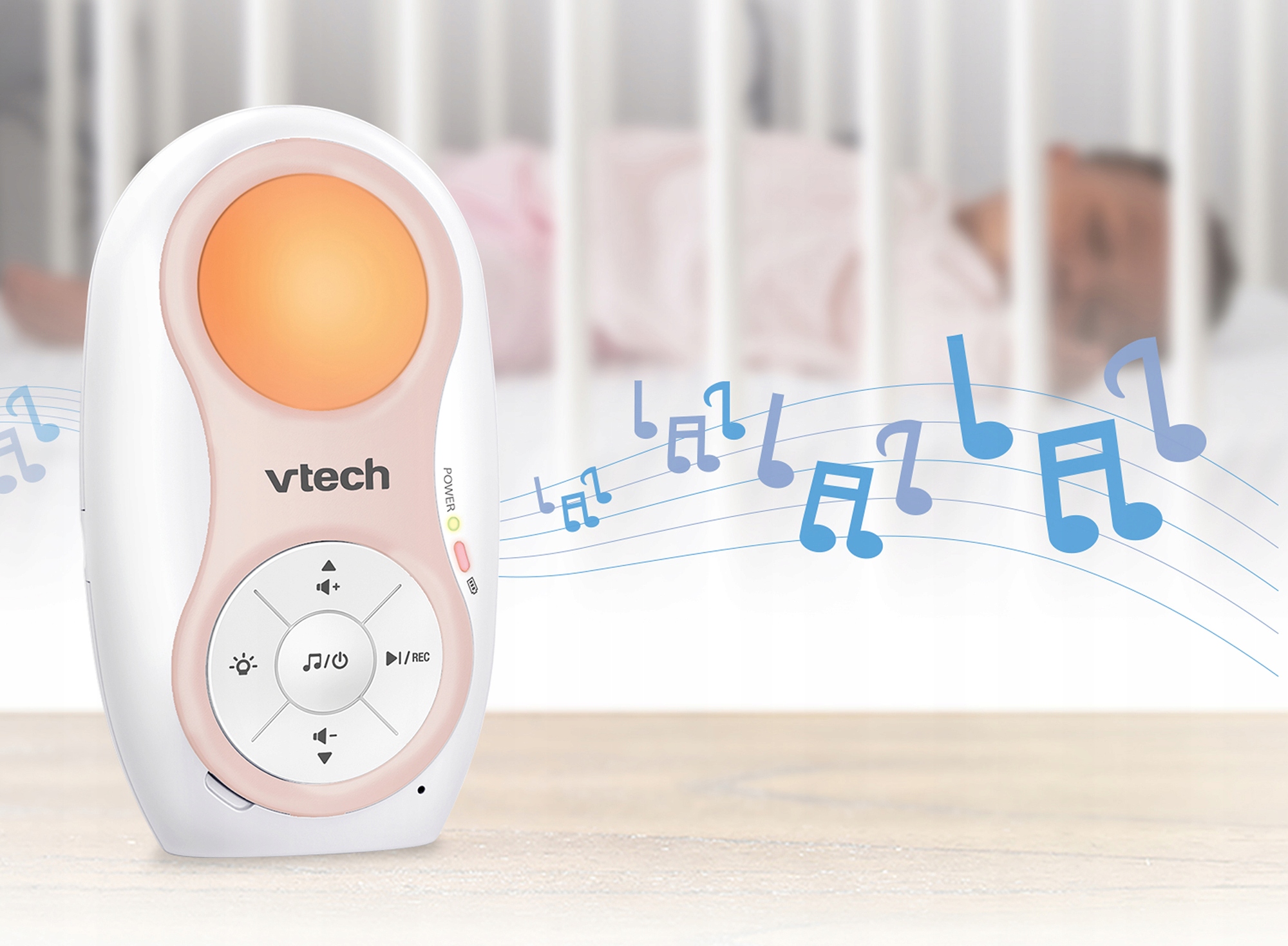 Wskaźnik temperatury na odbiorniku informuje o temperaturze panującej w otoczeniu dziecka.
