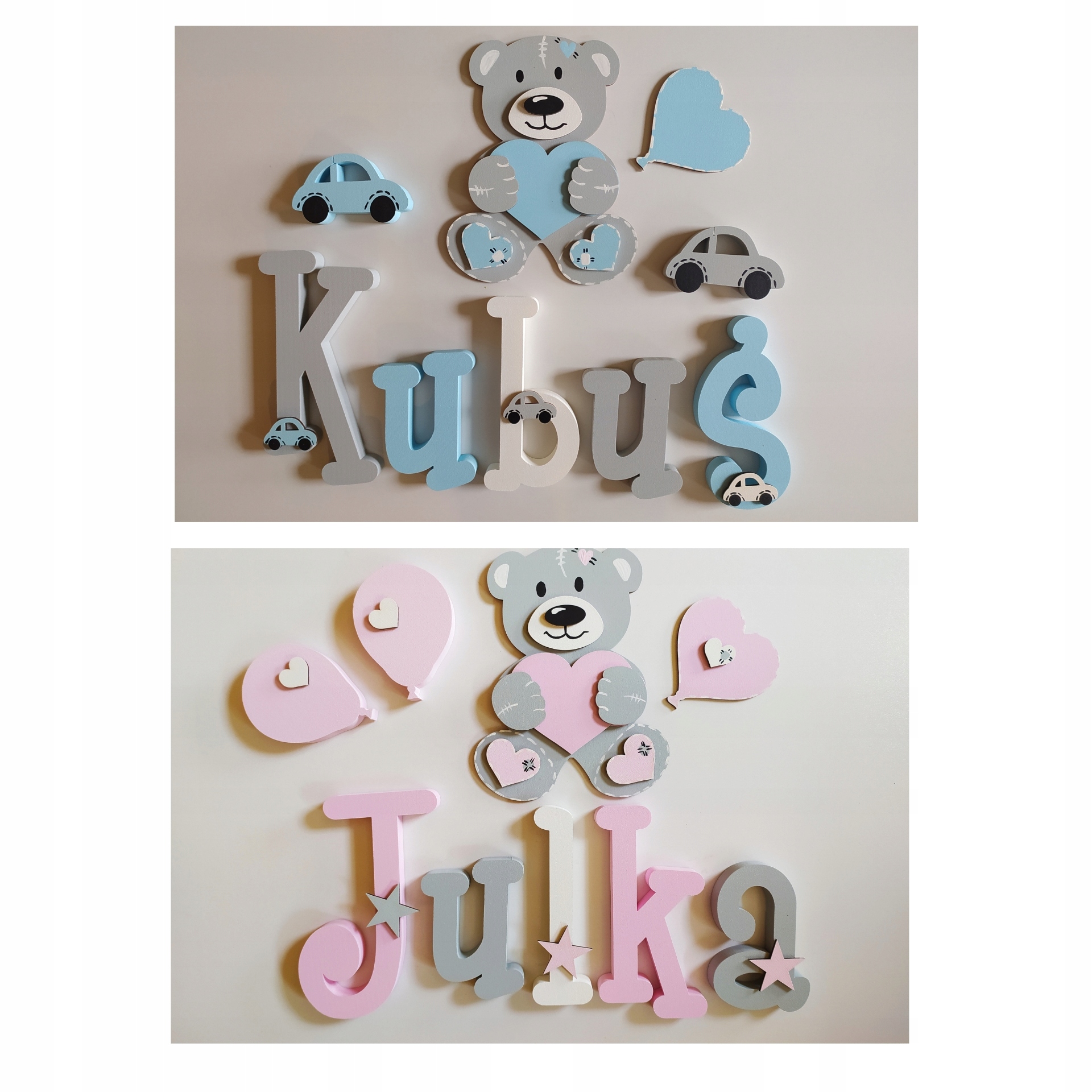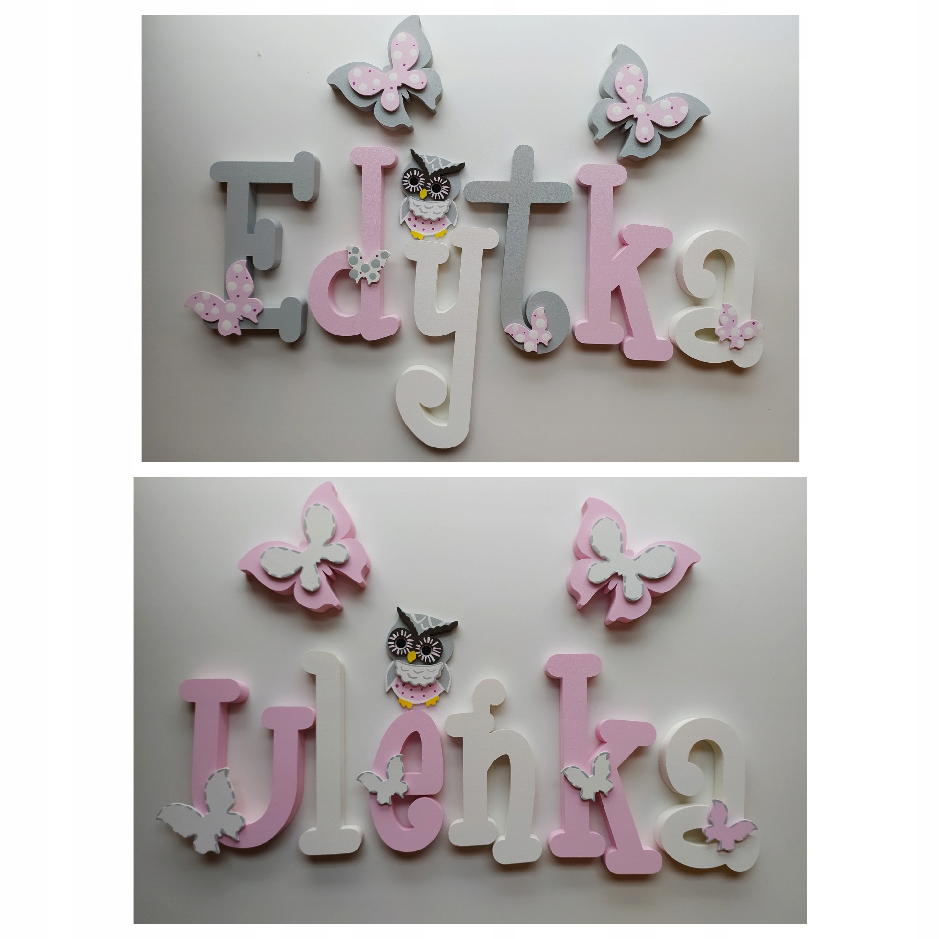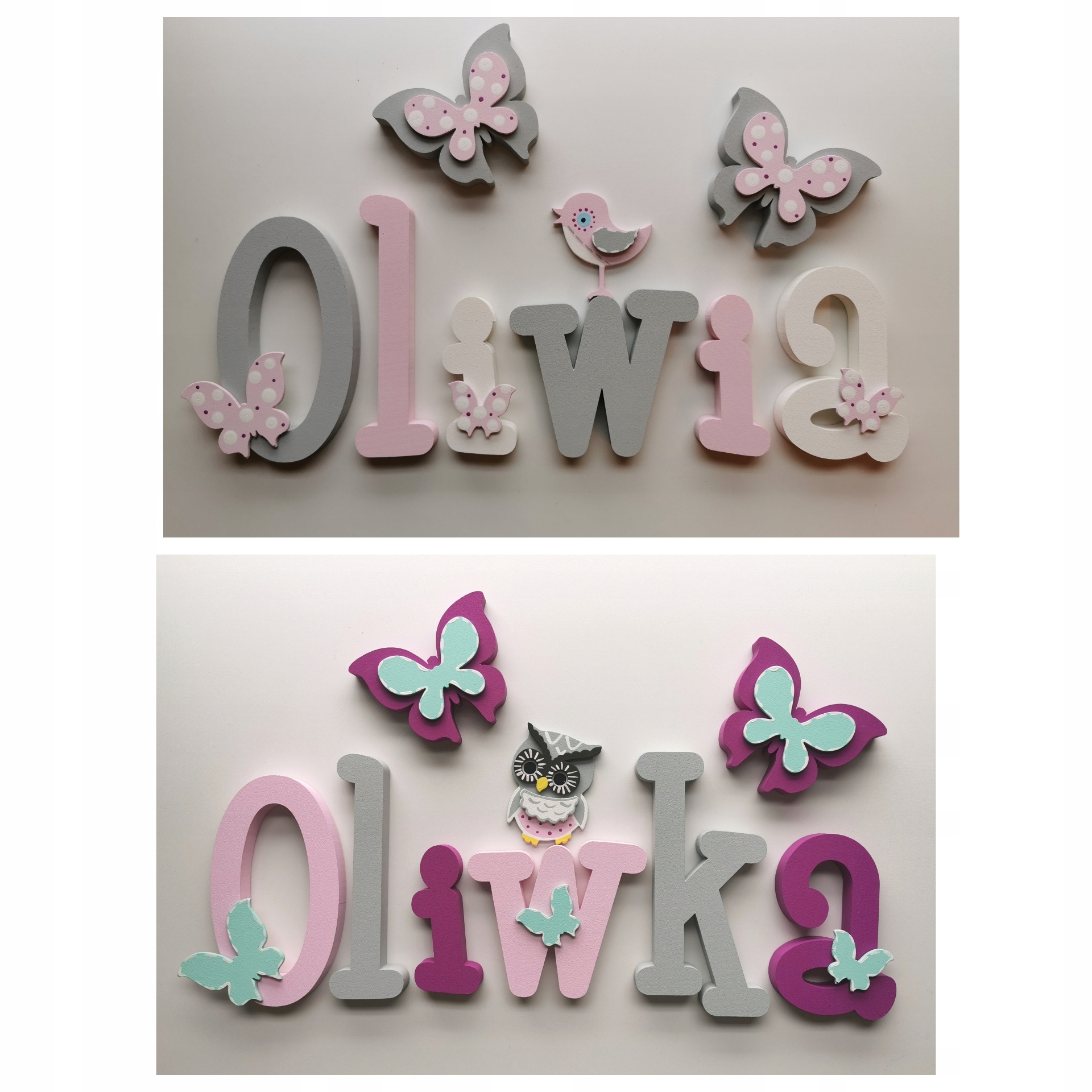 Przedmiotem sprzedaży jest dowolny 6 literowy napis z imieniem dziecka wykonany na zamówienie klienta.Litery przedstawiają rzeczywisty wygląd a nie są wizualizacja komputerową!